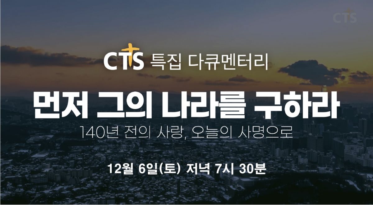 Çѱ¹ ¼±±³ 140³âÀÇ À¯»ê°ú ¿À´ÃÀÇ »ç¸íÀ» Á¶¸íÇÑ Æ¯º°±âȹ ´ÙÅ¥¸àÅ͸® ¡®¸ÕÀú ±×ÀÇ ³ª¶ó¸¦ ±¸Ç϶󡯰¡ 12¿ù 6ÀÏ ¿ÀÈÄ 7½Ã30ºÐ CTS TV¸¦ ÅëÇØ ¹æ¼ÛµÈ´Ù. À̹ø ´ÙÅ¥¸àÅ͸®´Â ¾ÖÅ͹̰¡ ±³À°¡¤ÀǷᡤÇöÁö ¼±±³¸¦ ÅëÇØ Çϳª´ÔÀÇ ³ª¶ó