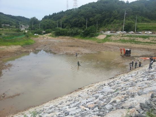 ¿øÁÖÁö¹æÈ¯°æÃ»Àº Áö³ 6ÀÏ ¿ÀÈĺÎÅÍ 7ÀϱîÁö ¹ã»ù ¾ç¼ö ÀÛ¾÷À» ÁøÇàÇØ Àú¼öÁö ¹Ù´ÚÀÌ º¸ÀÏ Á¤µµ·Î ¹°À» »©³Â´Ù. ±¹¸³»ýÅ¿ø, °¿ø´ë µî Àü¹® Á¶»ç±â°üÀÌ ÅõÀԵŠÀÜÁ¸ °³Ã¼¸¦ È®ÀÎÇßÁö¸¸, ÆÄÄí³ª ÇǶó³Ä´Â ¹ß°ßµÇÁö ¾Ê¾Ò´Ù.