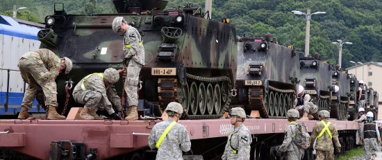 °æ±âµµ µ¿µÎõ¿¡ ÁֵРÁßÀÎ ÁÖÇѹ̱º 2»ç´Ü ºÎ´ë Áß ÆòÅÃÀ¸·ÎÀÇ Ã¹ ÀÌÀüÀ» ½ÃÀÛÇÑ 13ÀÏ ¿ÀÈÄ °æ±âµµ µ¿µÎõ½Ã ¹Ì2»ç´Ü Ä·ÇÁ ÄÉÀ̽ÿ¡¼ ¹Ì±ºÀÌ 2-8±âº´´ëÀÇ º¸º´ÀüÅõÀå°©Â÷¸¦ ¿Â÷¿¡ ½Æ°í ÀÖ´Ù.