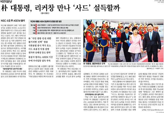 ¹Ú ´ëÅë·ÉÀº À̹ø ¾Æ¼ÀÁ¤»óȸÀÇ¿¡¼ ¸®Ä¿Ã¢ Áß±¹ ÃѸ®¸¦ ¸¸³ª »çµå¹èÄ¡¿¡ µû¸¥ Áß±¹ÀÇ ºÒ¸¸À» ÀáÀç¿ì°í ¼³µæÇس¾ ¼ö ÀÖÀ»Áö°¡ ÃʹÌÀÇ °ü½É»ç·Î ¶°¿Ã¶ú½À´Ï´Ù. ¹Ú ´ëÅë·ÉÀÌ ¾î¶² ¼º°ú¸¦ °®°í ±Í±¹ÇÒÁö ÁöÄѺ¼ ÀÏÀÔ´Ï´Ù.