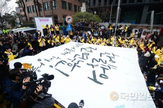 Âü°¡ÀÚµéÀº À̳¯ 'ÇÑÀÏ ÇÕÀÇ ¿øÃµ ¹«È¿! ÇҸӴϵ鲲 ÇØ¹æÀ»!'À̶ó°í ¾²ÀÎ Ç÷¡Ä«µå¸¦ µÚ·Î Àü´ÞÇÏ´Â ÆÛÆ÷¸Õ½º¸¦ ÆîÃÆ´Ù. Áýȸ ÈÄ¿¡´Â À±º´¼¼ ¿Ü±³ºÎ Àå°ü ÇØÀÓ °ÇÀǾÈÀ» Àü´ÞÇϱâ À§ÇØ ¿Ü±³ºÎ·Î À̵¿Çß´Ù.