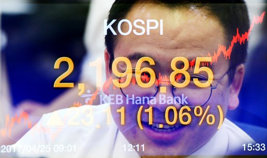 ºÏÇÑ Ã¢±ºÀý(Àιαº â°ÇÀÏ)À» ¸Â¾Æ ºÏÇÙ ¸®½ºÅ© ÀçÁ¡È·Î ÀÎÇÑ ¾Ç¿µÇâ ¿ì·Á¿¡µµ ºÒ±¸Çϰí ÄÚ½ºÇÇÁö¼ö°¡ 2190¼±À» µ¹ÆÄÇÏ¸ç ¿ÃÇØ ÃÖ°íÄ¡¸¦ »õ·Î ½è´Ù. 25ÀÏ ¼¿ï Áß±¸ ¿ÜȯÀºÇà º»Á¡ µô¸µ·ë Àü±¤ÆÇ¿¡ ÄÚ½ºÇÇ Áö¼ö°¡ ÀüÀÏ´ëºñ 23.11Æ÷ÀÎÆ®(1.06%) ¿À¸¥ 2,196.85¸¦ ³ªÅ¸³»°í ÀÖ´Ù. ÄÚ½ºÇǰ¡ 2,190¼±À» ³ÑÀº °ÍÀº 2011³â 7¿ù 8ÀÏ(2,192.83) ÀÌÈÄ Ã³À½ÀÌ´Ù. »çÁøÀº ´ÙÁßÃÔ¿µ.