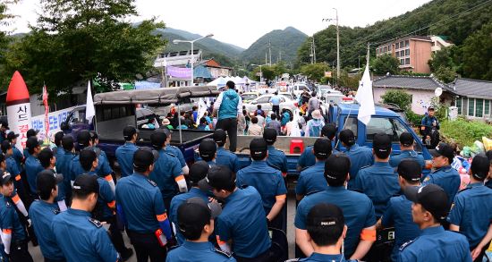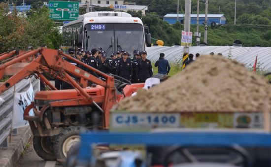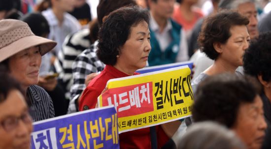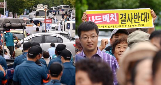 ÁÖÇѹ̱ºÀÇ »çµå(THAAD¡¤°í°íµµ¹Ì»çÀϹæ¾îü°è) ¹ß»ç´ë 4±â Ãß°¡¹èÄ¡°¡ 7ÀÏ »õº®¿¡ ´ÜÇàµÉ °ÍÀ¸·Î ¾Ë·ÁÁø 6ÀÏ ¿ÀÈÄ »çµå ÀúÁö ½ÃÀ§´ë¿Í °æÂûº´·ÂÀÌ ´ëÄ¡ÇÑ °æºÏ ¼ºÁÖ±º ¼Ò¼º¸® ¸¶À»¿¡ ±äÀå°¨ÀÌ È帣°í ÀÖ´Ù. ¼ºÁÖ¡¤±èõ Áֹΰú ½Ã¹Î´Üü ȸ¿ø µî 300¿©¸íÀº ¸¶À»È¸°ü ¾Õ¿¡ ¸ð¿© "»çµå ¹èÄ¡¸¦ ±âÁ¤»ç½Ç·Î ÇÏ´Â Àåºñ Ãß°¡¹èÄ¡¸¦ °áÄÚ ¹Þ¾ÆµéÀÏ ¼ö ¾ø´Ù"¸ç Áß´ÜÀ» Ã˱¸Çß´Ù.