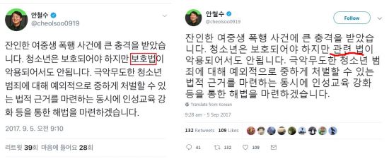 ¾Èö¼ö ´ëÇ¥´Â 5ÀÏ Æ®À§ÅÍ¿¡ "ÀÜÀÎÇÑ ¿©Áß»ý ÆøÇà »ç°Ç¿¡ Å« Ãæ°ÝÀ» ¹Þ¾Ò´Ù"¸é¼ "û¼Ò³âÀº º¸È£µÇ¾î¾ß ÇÏÁö¸¸ º¸È£¹ýÀÌ ¾Ç¿ëµÇ¾î¼µµ ¾ÈµÈ´Ù"°í ½è´Ù. ±×·¯³ª °ð º¸È£¹ýÀ» '°ü·Ã ¹ý'À¸·Î ¼öÁ¤Çß´Ù.