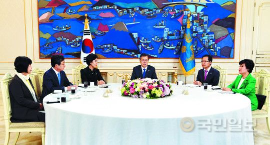 ¹®ÀçÀÎ ´ëÅë·ÉÀÌ 7ÀÏ Ã»¿Í´ë¿¡¼ ¿¸° ¿©¾ß 5´ç ´ëÇ¥ ȸµ¿¿¡¼ ±¹È¸ Â÷¿øÀÇ °³Çå¾È ¸¶·ÃÀ» Ã˱¸ÇÏ¸é¼ ¸ñ¼Ò¸® ÅæÀ» ³ô¿´´Ù°í ÇÑ´Ù.