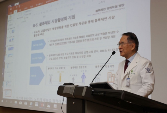 Á¤º¸Åë½Å»ê¾÷ÁøÈï¿ø ICT ÀüÁؼö º»ºÎÀåÀº ¡°±âÁ¸ µ¥ÀÌÅÍ °ü¸®¹æ½ÄÀÎ Áß¾ÓÁýÁ߽Ŀ¡¼ ¹þ¾î³ª Å»Áß¾Ó½Ä(ºÐ»ê½Ä)À¸·ÎÀÇ º¯È¸¦ À¯µµÇÒ ¼ö ÀÖ´Â ±â¼úÀÌ ¹Ù·Î ºí·ÏüÀΡ±À̶ó¸ç ¡°´Ù¾çÇÑ »ê¾÷, ƯÈ÷ À¯Åë, ÀÇ·áºÐ¾ß¿ÍÀÇ Àû¿ëÀº È¿À²ÀûÀÎ °³ÀÎ ÀÇ·áÁ¤º¸ °ü¸® ¹× À¯Àüü Á¤º¸ °øÀ¯ µî ¾÷¹«ÀÇ È¿À²¼º Çâ»ó, »õ·Î¿î °¡Ä¡ âÃâÀº ¹°·Ð È¿°úÀûÀÎ ¿î¿µºñ¿ë Àý°¨À¸·Î±îÁö À̾îÁú ¼ö ÀÖ´Ù¡±°í ¹àÇû´Ù.