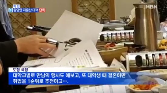 MBNÀº 17ÀÏ ÀüºÏµµ°¡ °³ÃÖÇÑ ÀúÃâ»ê ´ëÃ¥À§¿øÈ¸ ȸÀÇ ¿µ»óÀ» °ø°³Çß´Ù. À̳¯ ȸÀÇ¿¡¼ µµÃ» ±¹ÀåÀº ¡°Àþ¾úÀ» ¶§ °áÈ¥Çϸé Á÷Àåµµ »¡¸® Àâ°í ¾ÆÀ̵µ »¡¸® ³ºÀ¸´Ï±î¡¦¡±¶ó¸ç ¡°´ëÇб³ º°·Î ¸¸³²ÀÇ Çà»çµµ ÇØº¸°í, ¶Ç ´ëÇлý ¶§ °áÈ¥Çϸé Ãë¾÷À» 1¼øÀ§·Î ÃßõÇÏÀÚ¡±´Â ±¸Ã¼ÀûÀÎ ¹æ¹ý±îÁö Á¦½ÃÇß´Ù.