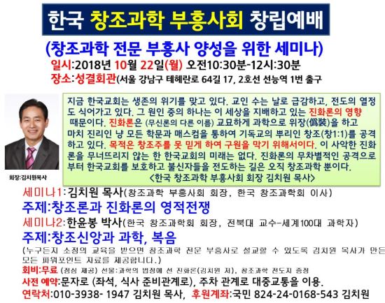 ±×´Â ¼¼¹Ì³ª¿¡¼ ¡®Ã¢Á¶·Ð°ú ÁøÈ·ÐÀÇ ¿µÀû ÀüÀÀ», ÇÑÀ±ºÀ(ÀüºÏ´ë ±³¼ö) Çѱ¹Ã¢Á¶°úÇÐȸÀåÀº ¡®Ã¢Á¶½Å¾Ó°ú °úÇÐ, º¹À½¡¯À» ÁÖÁ¦·Î ¹ßÇ¥ÇÑ´Ù.