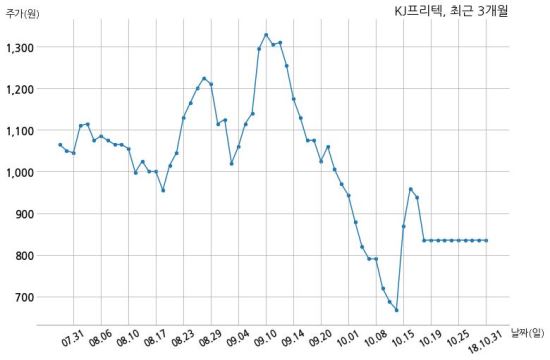 ÇÑÆí, KJÇÁ¸®ÅØÀÇ 15½Ã 10ºÐ ÇöÀçÁÖ°¡´Â 835¿øÀ¸·Î Á÷Àü °Å·¡ÀÏ ´ëºñ º¯µ¿¾øÀ¸¸ç, °Å·¡·®Àº 0ÁÖÀÌ´Ù.