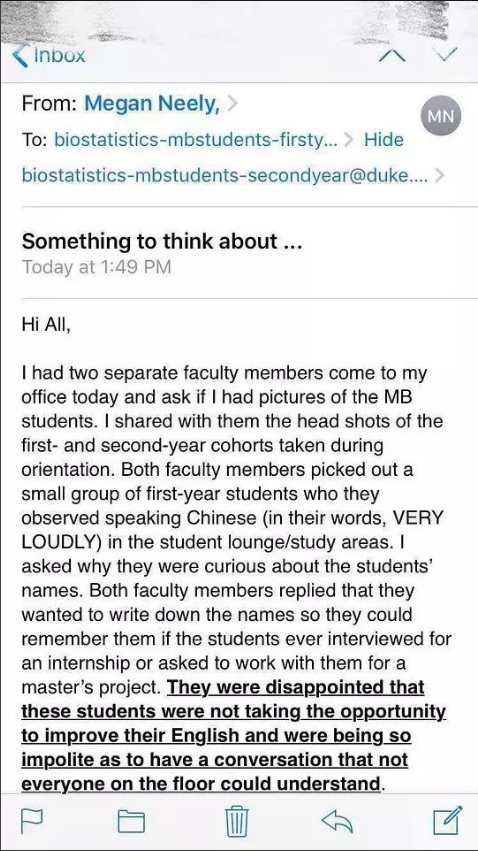 ¹Ì±¹ µàÅ©´ë ±³¼ö°¡ Áß±¹ À¯Çлýµé¿¡°Ô ±³³»¿¡¼´Â ¿µ¾î¸¸ »ç¿ëÇØ ´Þ¶ó´Â ³»¿ëÀÇ À̸ÞÀÏÀ» º¸³Â´Ù°¡ ÇлýµéÀÇ ¹Ý¹ß·Î º¸Á÷¿¡¼ ¹°·¯³µ´Ù°í ·ÎÀÌÅÍÅë½Å µîÀÌ 27ÀÏ(ÇöÁö½Ã°£) º¸µµÇß´Ù.