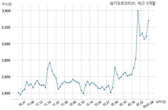 »ï±â¿ÀÅä¸ðƼºê´Â Ưº°°ü°èÀÚÀÎ ºê·¹ÀÎÀÚ»ê¿î¿ë(ÁÖ)µîÀÇ ÁöºÐÀ²ÀÌ 0%¿¡¼ 8.95%·Î º¯µ¿Çß´Ù°í 28ÀÏ °ø½ÃÇß´Ù. À̹ø ÁöºÐ º¯µ¿Àº °æ¿µÂü°¡¸ñÀûÀÌ ¾ø´Â ´Ü¼ø ÅõÀÚ¸ñÀûÀ¸·Î Á¦3ÀÚ¹èÁ¤ À¯»óÁõÀÚ ½ÅÁÖ Ãëµæ¿¡ ÀÇÇÑ °ÍÀÌ´Ù. ÇÑÆí, »ï±â¿ÀÅä¸ðƼºê´Â Àå ¸¶°¨ ÀÌÈÄ ÇØ´ç ±â¾÷°ø½Ã¸¦ ¹ßÇ¥ÇßÀ¸¸ç ¿À´Ã Á¾°¡°¡ 3,280¿ø, °Å·¡·®Àº 12,661,323ÁÖ·Î, Á÷Àü °Å·¡ÀÏ ´ëºñ 195¿ø(+6.32%) »ó½ÂÇß´Ù.