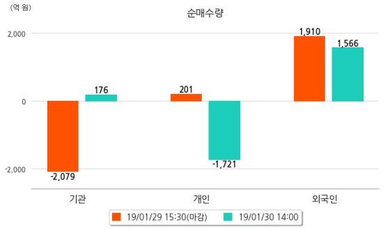 30ÀÏ ¿ÀÈÄ 2½Ã ÄÚ½ºÇÇ(2,198.65p, +15.29p, +0.70%)´Â ¿Ü±¹ÀÎ ¸Å¼ö°¡ ´Ã¸é¼ »ó½Â¼¼¸¦ º¸À̰í ÀÖ´Ù. ÅõÀÚÀÚº° µ¿ÇâÀ» »ìÆìº¸¸é ±â°üÀº 176¾ï¿ø ¼ø¸Å¼öÇßÀ¸¸ç, ¿Ü±¹Àεµ 1,566¾ï¿ø ¼ø¸Å¼öÇß´Ù. °³ÀÎÀº 1,721¾ï¿ø ¼ø¸ÅµµÇϰí ÀÖ´Ù.