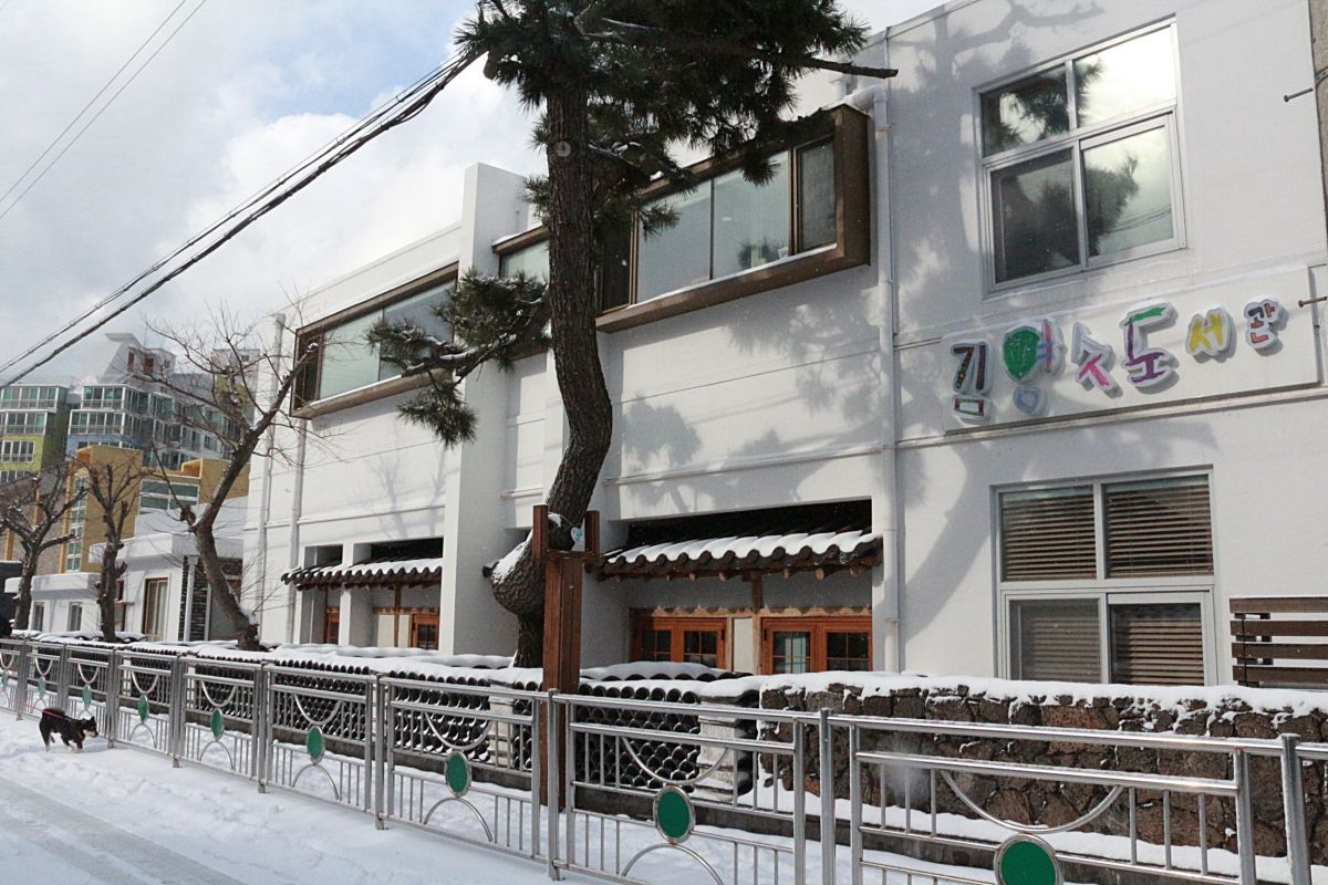제주의 가장 오랜 학교 중 한 곳인 제주북초등학교(1907년 개교)의 학교도서관(김영수도서관)은 리모델링 후 주민에 개방했다. 반세기도 더 전에 故김영수 동문이 후배들에게 고향 사랑을 당부하며 기증한 제주 최초 학교도서관. 세월이 흘러 낡고 외면받던 학교도서관은 아이들이 학교를 빠져나가는 오후 5시면 주민들을 위한 공간으로 새롭게 문을 연다. 재생사업으로 한층 예스러워진 외관은 바로 옆 제주 목관아 건물의 기와와 연결되며 마을에 한층 기품을 더했다.