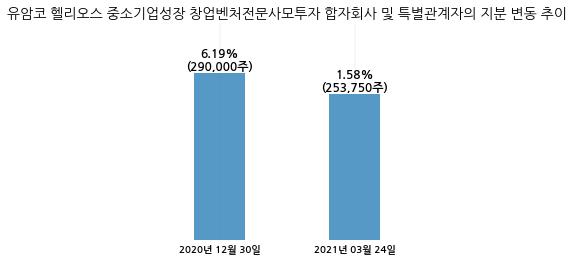 ·Îº¸¾²¸®´Â À¯¾ÏÄÚ Ç︮¿À½º Áß¼Ò±â¾÷¼ºÀå â¾÷º¥Ã³Àü¹®»ç¸ðÅõÀÚ ÇÕÀÚȸ»ç ¹× Ưº°°ü°èÀÚÀÇ ÁöºÐÀ²ÀÌ 6.19%¿¡¼ 1.58%·Î º¯µ¿Çß´Ù°í 25ÀÏ °ø½ÃÇß´Ù. ÇÑÆí, ·Îº¸¾²¸®´Â Àå ¸¶°¨ ÀÌÈÄ ÇØ´ç ±â¾÷°ø½Ã¸¦ ¹ßÇ¥ÇßÀ¸¸ç ¿À´Ã Á¾°¡°¡ 1,110¿ø, °Å·¡·®Àº 73,434ÁÖ·Î, Á÷Àü °Å·¡ÀÏ ´ëºñ 10¿ø(+0.91%) »ó½ÂÇß´Ù.
