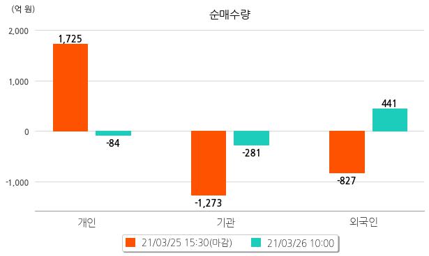 26ÀÏ ¿ÀÀü 10½Ã ÄÚ½ºÇÇ(3,019.77p, +11.44p, +0.38%)´Â ¿Ü±¹ÀÎ ¸Å¼ö°¡ ´Ã¸é¼ »ó½Â¼¼·Î ½ÃÀÛÇß´Ù. ÅõÀÚÀÚº° µ¿ÇâÀ» »ìÆìº¸¸é ±â°üÀº 281¾ï¿ø ¼ø¸ÅµµÇßÀ¸¸ç, °³Àεµ 84¾ï¿ø ¼ø¸ÅµµÇß´Ù. ¿Ü±¹ÀÎÀº 441¾ï¿ø ¼ø¸Å¼öÇϰí ÀÖ´Ù.