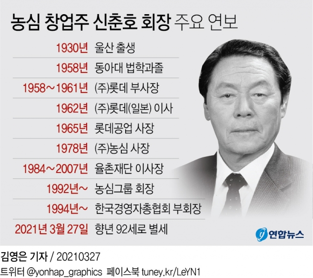½Å ȸÀåÀº À̳¯ ¿ÀÀü 3½Ã38ºÐÂë Áöº´À¸·Î º°¼¼Çß´Ù. 1956³â ³ó½ÉÀ» â¾÷ÇØ 92³â±îÁö ´ëÇ¥ÀÌ»ç »çÀåÀ» ¿ªÀÓÇß°í, ³ó½ÉÀÌ ±×·ì üÁ¦·Î ÀüȯÇÏ¸é¼ ÃÖ±Ù±îÁö ±×·ì ȸÀåÁ÷À» ¸Ã¾Æ¿Ô´Ù. ½Å ȸÀå¿¡ À̾î Àå³²ÀÎ ½Åµ¿¿ø ¢ß³ó½É ºÎȸÀåÀÌ ³ó½ÉÀ» À̲ø°Ô µÆ´Ù.