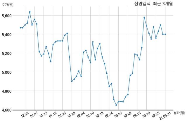 »ï¿µ¿¥ÅØÀº °¹®½Ä ¹× Ưº°°ü°èÀÚÀÇ ÁöºÐÀ²ÀÌ 17.51%¿¡¼ 17.74%·Î º¯µ¿Çß´Ù°í 31ÀÏ °ø½ÃÇß´Ù. ÇÑÆí, »ï¿µ¿¥ÅØÀÇ 13½Ã 07ºÐ ÇöÀçÁÖ°¡´Â 5,400¿øÀ¸·Î Á÷Àü °Å·¡ÀÏ ´ëºñ º¯µ¿¾øÀ¸¸ç, °Å·¡·®Àº 94,491ÁÖÀÌ´Ù.