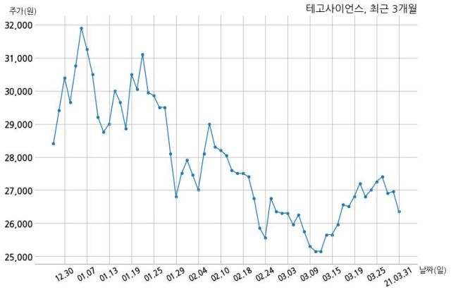 Å×°í»çÀ̾𽺴 Àü¼¼È ¹× Ưº°°ü°èÀÚÀÇ ÁöºÐÀ²ÀÌ 42.38%¿¡¼ 42.3%·Î º¯µ¿Çß´Ù°í 31ÀÏ °ø½ÃÇß´Ù. ÇÑÆí, Å×°í»çÀ̾ð½ºÀÇ 13½Ã 49ºÐ ÇöÀçÁÖ°¡´Â 26,350¿øÀ¸·Î Á÷Àü °Å·¡ÀÏ ´ëºñ 600¿ø(-2.23%) Ç϶ôÀ̸ç, °Å·¡·®Àº 17,918ÁÖÀÌ´Ù.