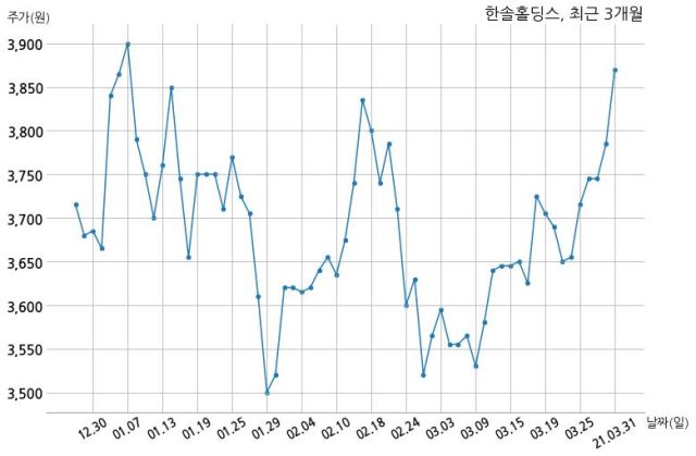 ÇѼÖȦµù½º´Â Á¶µ¿±æ ¹× Ưº°°ü°èÀÚÀÇ ÁöºÐÀ²ÀÌ 30.28%¿¡¼ 30.78%·Î º¯µ¿Çß´Ù°í 31ÀÏ °ø½ÃÇß´Ù. ÇÑÆí, ÇѼÖȦµù½ºÀÇ 15½Ã 30ºÐ ÇöÀçÁÖ°¡´Â 3,870¿øÀ¸·Î Á÷Àü °Å·¡ÀÏ ´ëºñ 85¿ø(+2.25%) »ó½ÂÀ̸ç, °Å·¡·®Àº 602,167ÁÖÀÌ´Ù.