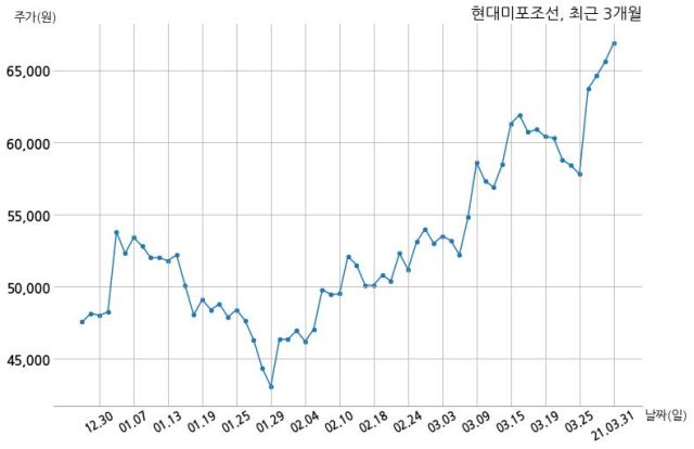 ÇÑÆí, Çö´ë¹ÌÆ÷Á¶¼±Àº Àå ¸¶°¨ ÀÌÈÄ ÇØ´ç ±â¾÷°ø½Ã¸¦ ¹ßÇ¥ÇßÀ¸¸ç ¿À´Ã Á¾°¡°¡ 66,900¿ø, °Å·¡·®Àº 572,591ÁÖ·Î, Á÷Àü °Å·¡ÀÏ ´ëºñ 1,300¿ø(+1.98%) »ó½ÂÇß´Ù.
