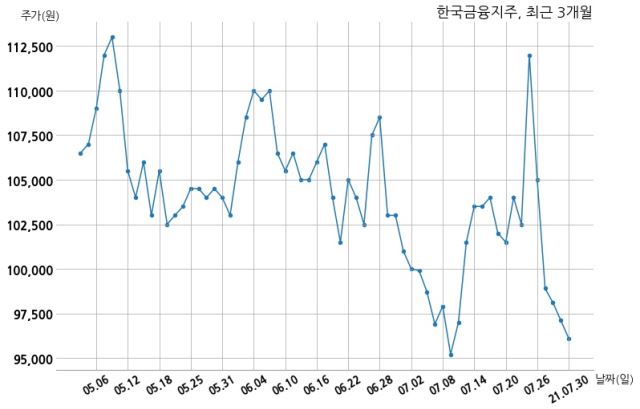 Çѱ¹±ÝÀ¶ÁöÁÖ´Â ±¹¹Î¿¬±Ý°ø´Ü ¹× Ưº°°ü°èÀÚÀÇ ÁöºÐÀ²ÀÌ 11.66%¿¡¼ 11.56%·Î º¯µ¿Çß´Ù°í 30ÀÏ °ø½ÃÇß´Ù. ÇÑÆí, Çѱ¹±ÝÀ¶ÁöÁÖÀÇ 14½Ã 24ºÐ ÇöÀçÁÖ°¡´Â 96,100¿øÀ¸·Î Á÷Àü °Å·¡ÀÏ ´ëºñ 1,000¿ø(-1.03%) Ç϶ôÀ̸ç, °Å·¡·®Àº 231,710ÁÖÀÌ´Ù.