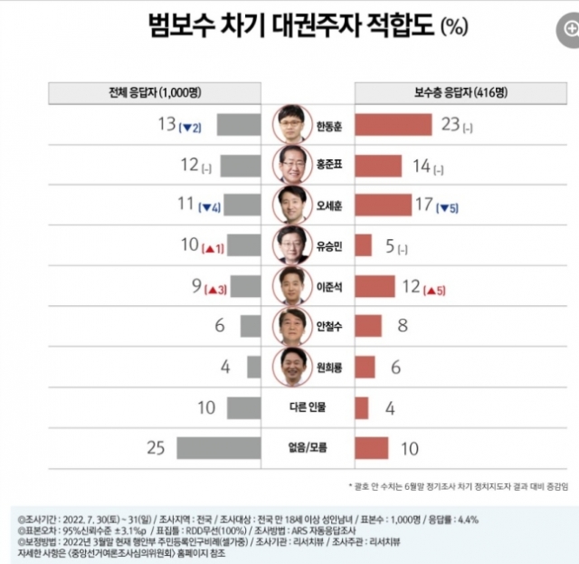 Â÷±â ´ë±ÇÁÖÀÚ ÀûÇÕµµ Á¶»ç¿¡¼ Çѵ¿ÈÆ ¹ý¹«ºÎ Àå°üÀÌ 13%·Î ¹üº¸¼ö 1À§¸¦ Â÷ÁöÇÑ ¿©·ÐÁ¶»ç °á°ú°¡ 2ÀÏ ³ª¿Ô´Ù. È«ÁØÇ¥ ´ë±¸½ÃÀå, ¿À¼¼ÈÆ ¼¿ï½ÃÀåÀÌ ±Ù¼ÒÇÑ Â÷ÀÌ·Î ±× µÚ¸¦ À̾ú´Ù.
