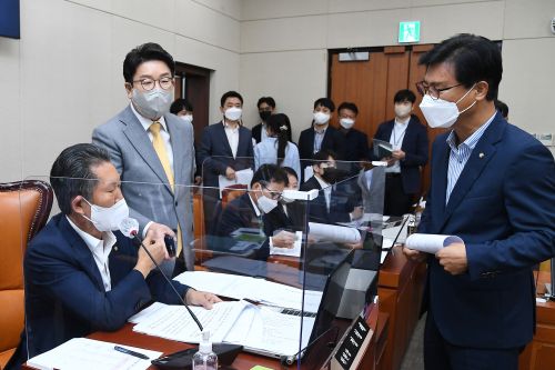 ±Ç¼ºµ¿ ±¹¹ÎÀÇÈû ÀÇ¿ø°ú ¹«¼Ò¼® ¹Ú¿ÏÁÖ ÀÇ¿ø, º¯ÀçÀÏ ¹ÎÁÖ´ç ÀÇ¿øÀÇ ÁßÀç·Î ȸÀǰ¡ 10¿©ºÐ°£ Á¤È¸ ÈÄ ¼Ó°³µÆÁö¸¸ ¾ç´ç ½Å°æÀüÀº °è¼Ó À̾îÁ³´Ù.