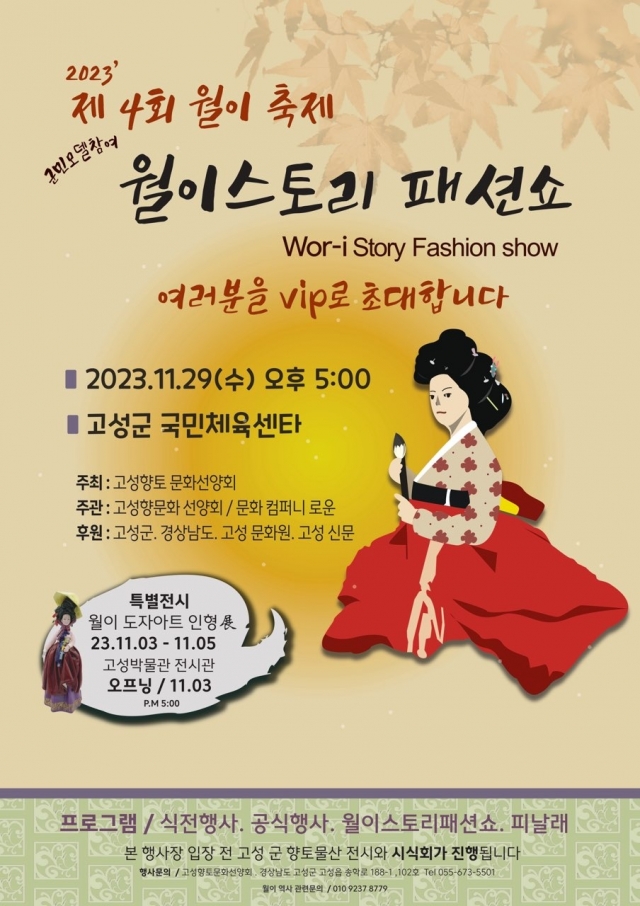 °í¼ºÇâÅ乮ȼ±¾çȸ(ȸÀå ¹Ú¼¿µ)´Â ´ÙÀ½ ´Þ 29ÀÏ ¿ÀÈÄ 5½Ã °æ³² °í¼º±º ±¹¹ÎüÀ°¼¾ÅÍ¿¡¼ ¡®2023 Á¦4ȸ ¿ùÀÌ ÃàÁ¦¡¯(Æ÷½ºÅÍ)¸¦ °³ÃÖÇÑ´Ù.