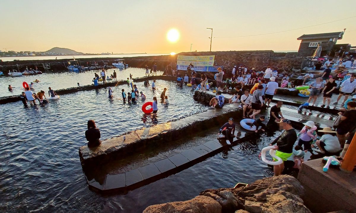 Á¦ÁÖÀÇ ¿©¸§ÀÌ ±í¾î°£´Ù. °Å¸®¸¦ ´Þ±¸´ø žçÀÌ ¸ð½ÀÀ» °¨Ã߸é, Á¦ÁÖÀÇ »ç¶÷µéÀº ÇϳªµÑ ¿ëõ¼ö°¡ ³ª´Â °÷À¸·Î ¸ð¿©µç´Ù. ¹°³îÀ̸¦ ³¡³½ ¾ÆÀ̵µ, ÀÏÀ» ¸¶Ä¡°í µ¹¾Æ¿Â ¾Æºüµµ ÁöÄ£ ¸¶À½À» Àá½Ã ³»·Á³õ°í Â÷°¡¿î ¹°¿¡ ¸öÀ» ´ã°¡ ±ä ¿©¸§À» Àش´Ù.