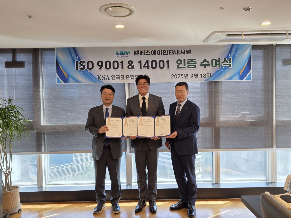 ¿¤¿¡½º¿¡ÀÌÀÎÅͳ»¼Å³Î(LSAÀÎÅͳ»¼Å³Î)Àº 18ÀÏ Çѱ¹Ç¥ÁØÇùȸ·ÎºÎÅÍ ISO 9001(ǰÁú°æ¿µ½Ã½ºÅÛ)°ú ISO 14001(ȯ°æ°æ¿µ½Ã½ºÅÛ)¿¡ °üÇÑ ±¹Á¦ Ç¥ÁØÀÎÁõÀ» µ¿½Ã¿¡ ÃëµæÇß´Ù°í ¹àÇû´Ù.
