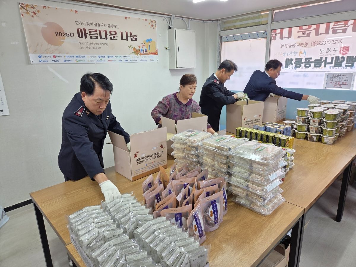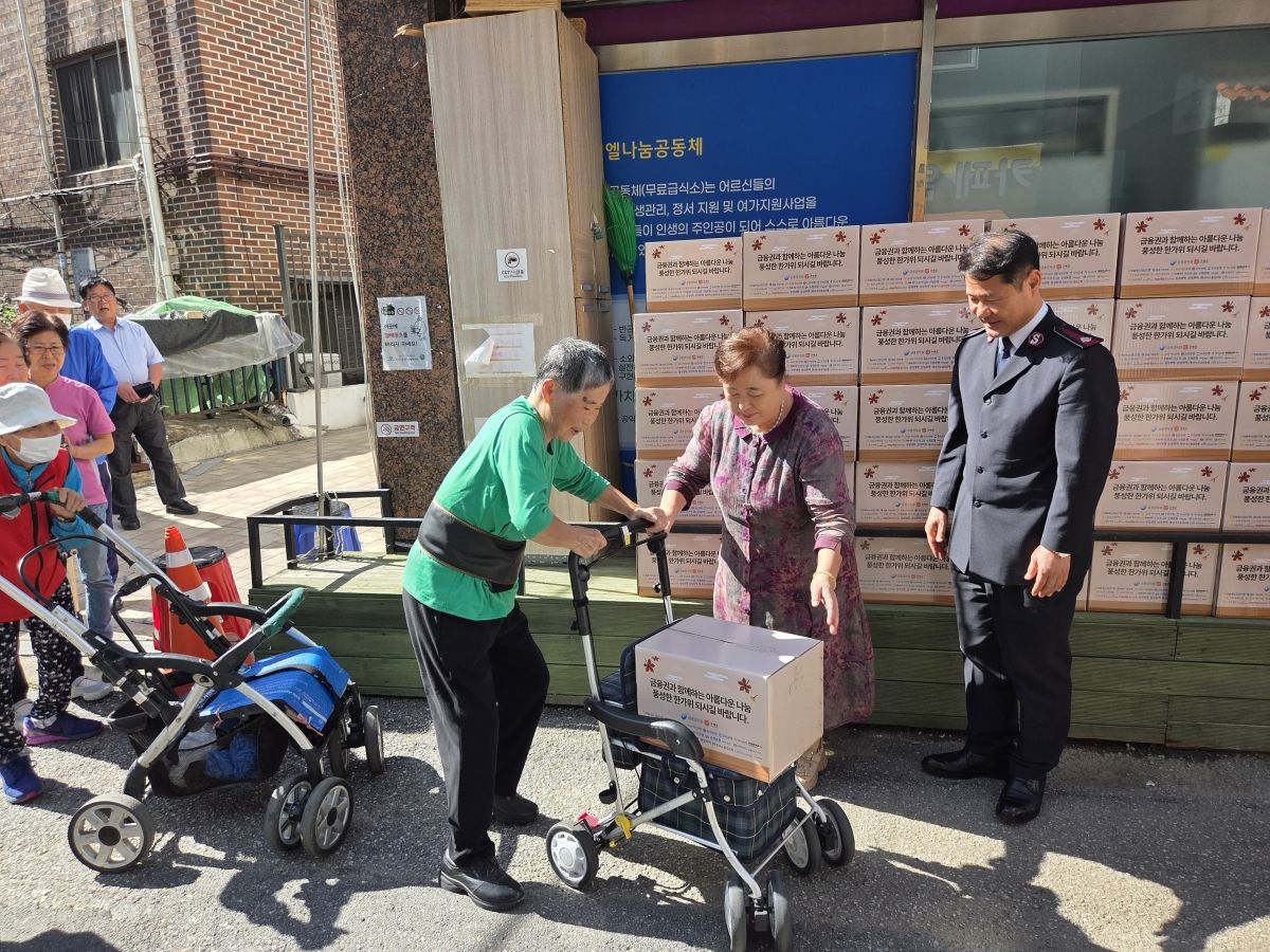 À̳¯ º¦¿¤³ª´®°øµ¿Ã¼ ¾Õ¸¶´çÀº À̸¥ ½Ã°£ºÎÅÍ ³ª´® ŰƮ¸¦ ¹Þ±â À§ÇØ Á¶½É½º·´°Ô ÁÙÀ» ¼± ¾î¸£½Åµé°ú, ¼ÛÆí°ú ÇÞ¹Ý µîÀÌ ´ã±ä »óÀÚ¸¦ ºÐÁÖÈ÷ Æ÷ÀåÇÏ´Â ºÀ»çÀÚµé·Î ºÏÀû¿´´Ù. À̳¯ º¦¿¤³ª´®°øµ¿Ã¼¸¦ ÅëÇØ ÃÑ 200°³ÀÇ ³ª´® »óÀÚ°¡ ¾î¸£½Åµé¿¡°Ô Àü´ÞµÆ´Ù.