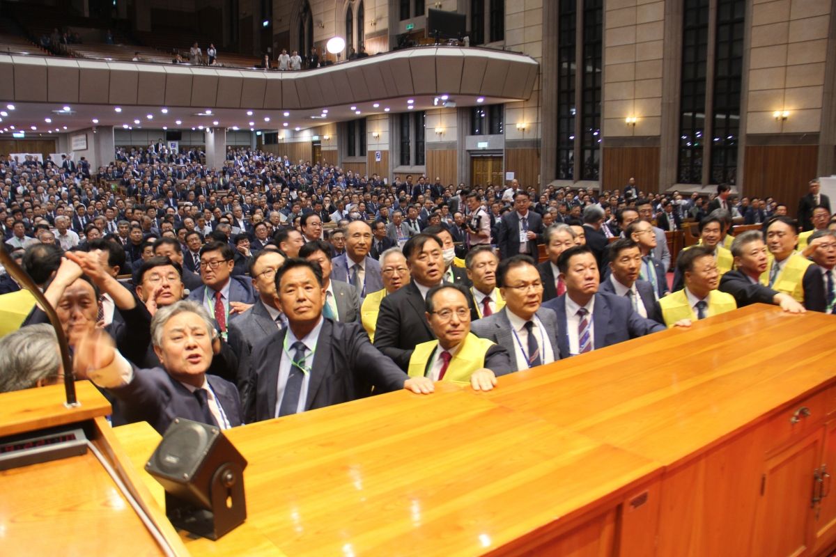 ¸ñ»ç ºÎÃÑȸÀå Èĺ¸ ÀÚ°ÝÀ» µÎ°í °ÝÇÑ ³í¶õÀ» ºúÀº ´ëÇÑ¿¹¼ö±³Àå·Îȸ(¿¹Àå) ÇÕµ¿ ÃÑȸ(ÃÑȸÀå ±èÁ¾Çõ ¸ñ»ç)¿¡ À̹ø Á¤±âÃÑȸ °ø°£À» ³»ÁØ ¼¿ï ÃæÇö±³È¸(ÇÑ±Ô»ï ¸ñ»ç)°¡ ¿»·ÎÄ«µå¸¦ ²¨³Â´Ù.