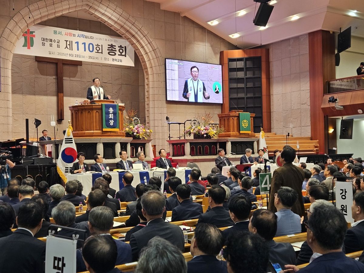 ´ëÇÑ¿¹¼ö±³Àå·Îȸ(¿¹Àå) ÅëÇÕ ÃÑȸ(ÃÑȸÀå Á¤ÈÆ ¸ñ»ç)°¡ 24ÀÏ ¼¿ï Áß±¸ ¿µ¶ô±³È¸¿¡¼ ÁøÇàµÈ 110ȸ Á¤±âÃÑȸ ÀÌÆ±³¯ ¿ÀÈÄ È¸¹«¿¡¼ ¿©¼º ÃÑ´ë(ÃÑȸ ´ëÀÇ¿ø) ÇÒ´çÁ¦ ¹ýÁ¦È¸¦ ºÎ°áÇß´Ù.