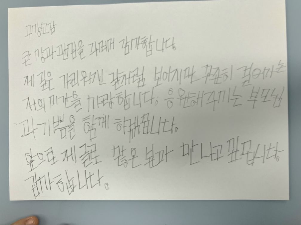 ³× »ì ¶§ »ç°í·Î ÆÈ´Ù¸®¸¦ ÀÒ°í Æ¯¼ö±³»ç°¡ µÈ ÀÚ½ÅÀÇ »îÀ» À̾߱âÇÑ ±Û·Î °í¿ë ºÎ¹® ´ë»óÀ» ¹ÞÀº ¹ÚÇ׽¾¾´Â, ¾î¸° ½ÃÀý ÇÑ ¼±»ý´ÔÀÇ °Ý·Á°¡ Å« ÈûÀÌ µÇ¾ú´Ù°í ȸ»óÇß´Ù. ±×´Â ÀÚ½ÅÀÇ À̾߱Ⱑ ¶Ç ´Ù¸¥ ´©±º°¡¿¡°Ô ±æÀÌ µÇ±â¸¦ ¹Ù¶õ´Ù¸ç ¡°ÀúÀÇ ÀÌ Æò¹üÇÑ ÀÏ»óÀÇ ±ÛÀÌ Ãë¾÷À» ÁغñÇÏ´Â ´©±º°¡¿¡°Ô Å« ÈûÀÌ µÇ¾úÀ¸¸é ÇÑ´Ù¡±°í ¸»Çß´Ù.