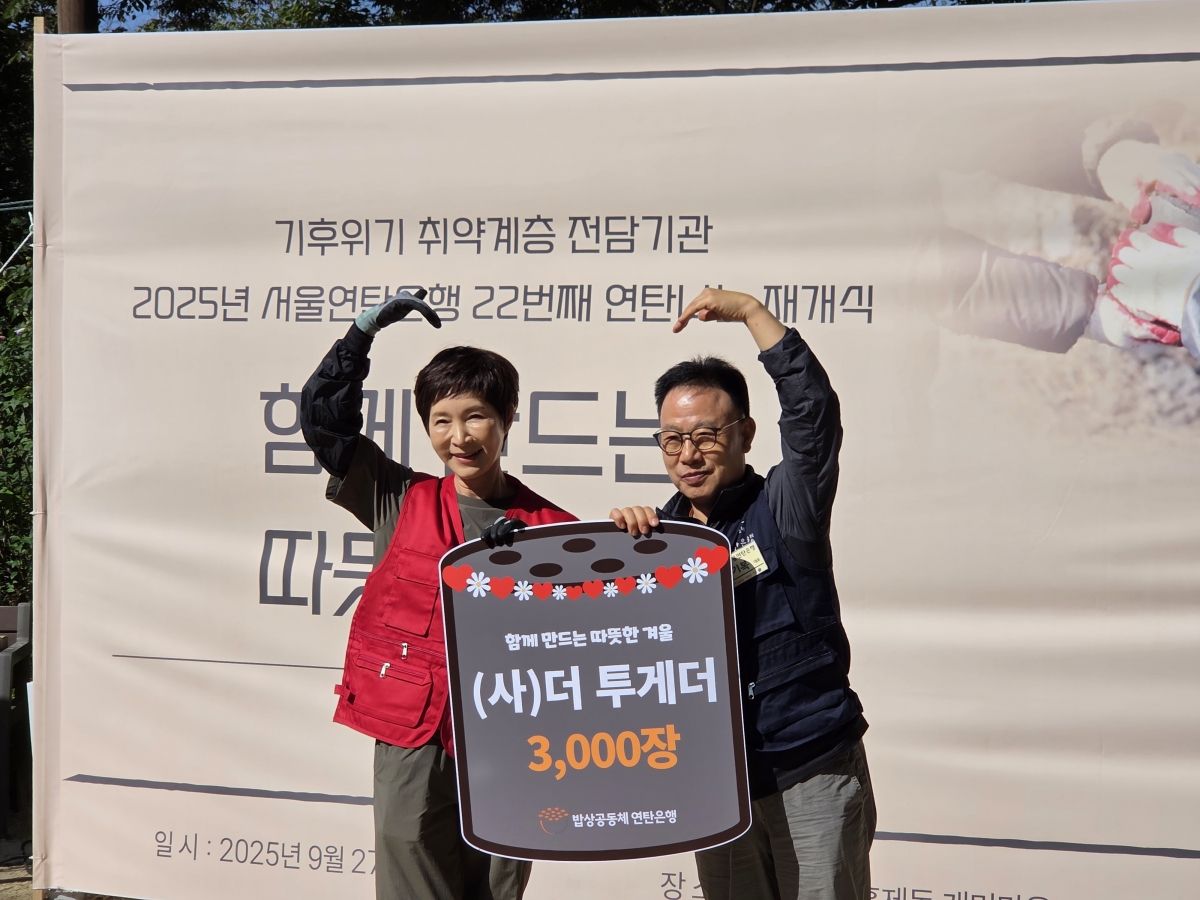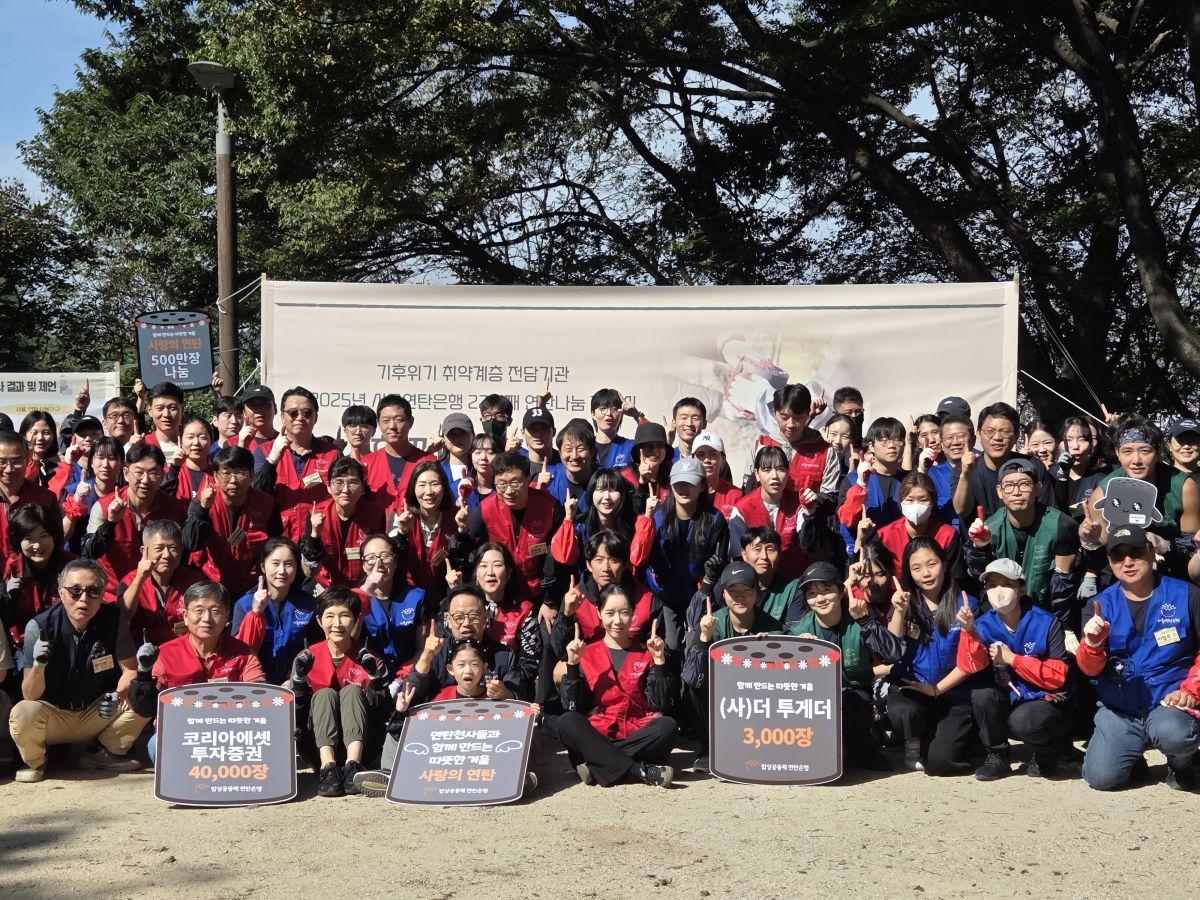 À̳¯ Çà»ç´Â ¹ä»ó°øµ¿Ã¼ ¿¬ÅºÀºÇàÀÇ ¿ÃÇØ ¡®±âÈÄȯ°æ Ãë¾à°èÃþÀ» À§ÇÑ »ç¶ûÀÇ ¿¬Åº 500¸¸Àå ³ª´©±â¡¯ Ä·ÆäÀÎÀÇ ½ÃÀÛÀ» ¾Ë¸®´Â Àç°³½ÄÀ̾ú´Ù. 22³â° À̾îÁø ¡®µû¶æÇÑ ´ëÇѹα¹ ¸¸µé±â¡¯ ÇöÀåÀº À̸¥ ¾ÆÄ§ºÎÅÍ ºÐÁÖÇß´Ù. ±â¾÷ Á¶³¢¸¦ ÀÔÀº Á÷ÀåÀÎ, ÁÖ¸»À» ¹Ý³³ÇÑ Ã»³â µî 130¿©¸íÀÇ ºÀ»çÀÚµéÀÌ °Ë´ó ¹¯Àº Àå°©À» ³¢°í ±æ°Ô ´Ã¾î¼¹´Ù. ¡°ÀÚ, °©´Ï´Ù! Á¶½É!¡± ±¸È£¿Í ÇÔ²² 3.65§¸ÀÇ ¿¬ÅºÀÌ ¼ÕÀ» °ÅÃÄ ¸¶À½À¸·Î ¿Å°Ü°¬´Ù.