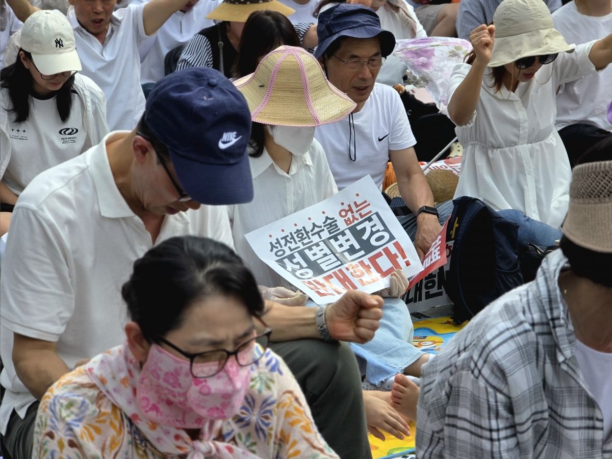 27ÀÏ ¼¿ï ¿µµîÆ÷±¸ ±¹È¸ÀÇ»ç´ç 3¹ø Ãⱸ ¾Õ. 5¸¸ ¸íÀÇ ÀÎÆÄ°¡ 400m¿¡ ´ÞÇÏ´Â ´ë¿À» ¸¸µé¾ú´Ù. ±â¿ÂÀº ³ôÁö ¾Ê¾ÒÁö¸¸ Àڿܼ± Áö¼ö 7·Î ¡®³ôÀ½¡¯À» ±â·ÏÇÏ´Â ³¯¾¾¿´´Ù. ¾Æ½ºÆÈÆ® ¹Ù´Ú¿¡ ¾ÉÀº »ç¶÷µéÀº ¡®¼ºÀüȯ ¼ö¼ú ¾ø´Â ¼ºº°º¯°æ ¹Ý´ëÇÑ´Ù¡¯ ¡®¼ºÆòµî°¡Á·ºÎ ¹Ý´ëÇÑ´Ù¡¯¶ó°í ÀûÈù Á¾À̸¦ µé°í ½ÃÀ§Çϰí ÀÖ¾ú´Ù. À̳¯ ÅëÇÕ±¹¹Î´ëȸ ¡®°Å·èÇѹæÆÄÁ¦(´ëȸÀå ¿ÀÁ¤È£ ¸ñ»ç)¡¯°¡ ¿©¼º°¡Á·ºÎ¸¦ ¡®¼ºÆòµî°¡Á·ºÎ¡¯·Î ¹Ù²Ù´Â Á¤ºÎÁ¶Á÷¹ý °³Á¤¾È¿¡ ¹Ý´ëÇØ Áýȸ¸¦ ¿¾ú´Ù.