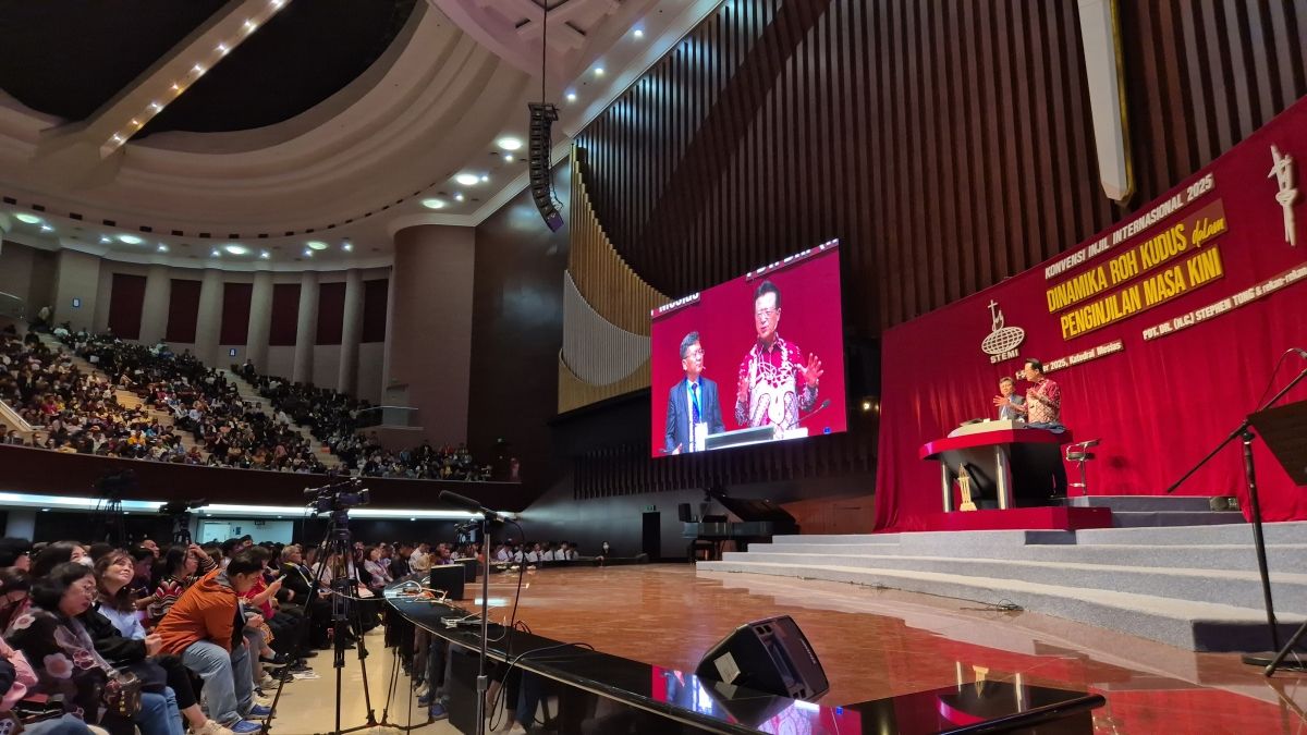 ¿ÀÁ¤Çö »ç¶ûÀDZ³È¸ ¸ñ»ç°¡ Àεµ³×½Ã¾Æ ÀÚÄ«¸£Å¸ º¹À½ÁÖÀǰ³Çõ±³È¸(½ºÆ¼ºì Åë ¸ñ»ç)¿¡¼ 1ÀÏ °³¸·ÇÑ ¡®¼¼°èº¹À½È¸¦ À§ÇÑ ±Û·Î¹ú ÄÁº¥¼Ç 2025¡¯ °»ç·Î ³ª¼ ¸Þ½ÃÁö¸¦ ÀüÇß´Ù. ÄÁº¥¼ÇÀº ¿À´Â 5ÀϱîÁö ÁøÇàµÈ´Ù.