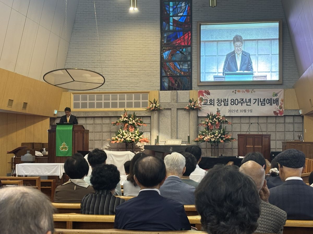 À̳¯ ±³È¸´Â ⸳ 80ÁÖ³âÀ» ¸Â¾Æ ¡®Èû½á ºÎ¸£½É°ú ÅÃÇϽÉÀ» ±»°Ô Ç϶ó¡¯(º¦ÈÄ 1:10)¸¦ ÁÖÁ¦·Î ±â³ä¿¹¹è¸¦ µå·È´Ù. 1945³â ÇØ¹æ°ú ÇÔ²² ž 6¡¤25ÀüÀï°ú »ê¾÷È, ¹ÎÁÖÈÀÇ °Ý¶ûÀ» Áö³ª¿Â ±³È¸. ±× ¿ª»ç¸¦ ±â³äÇϱâ À§ÇØ µµ½É ÇѺ¹ÆÇ ¿¹¹è´ç ¾È¿¡´Â ¼¼´ë¸¦ ÀÕ´Â ½Å¾ÓÀÇ °í¹éÀÌ ¿ï·Á ÆÛÁ³´Ù.
