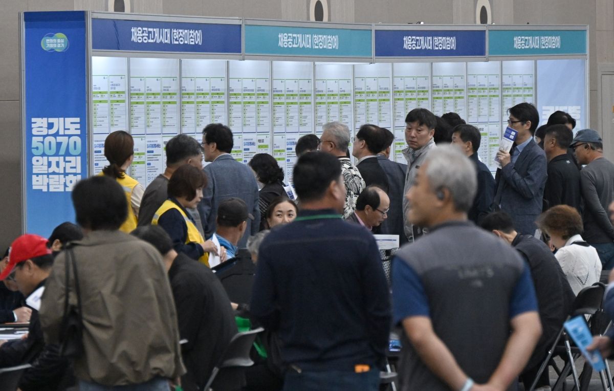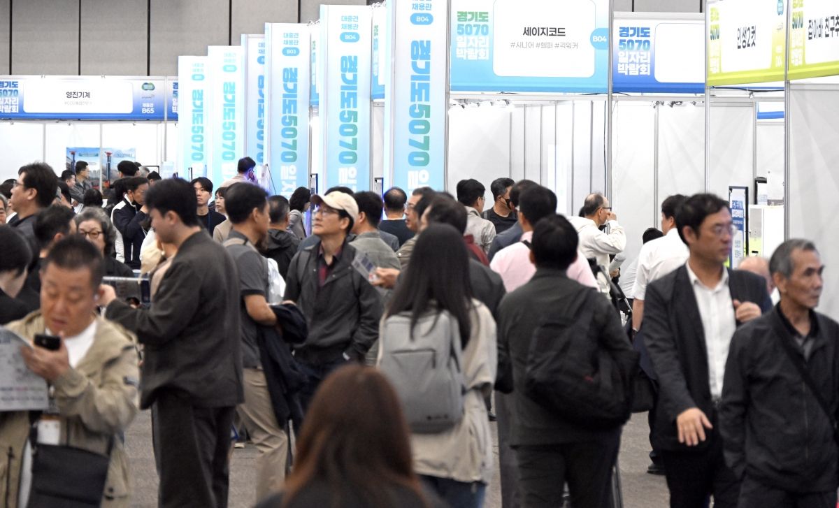 14ÀÏ °æ±â °í¾ç½Ã ŲŨ½º¿¡¼ ¿¸° ¡®°æ±âµµ 5070 ÀÏÀÚ¸®¹Ú¶÷ȸ¡¯¸¦ ãÀº ±¸Á÷ÀÚµéÀÌ Ã¤¿ë Á¤º¸¸¦ »ìÆìº¸°í ÀÖ´Ù.