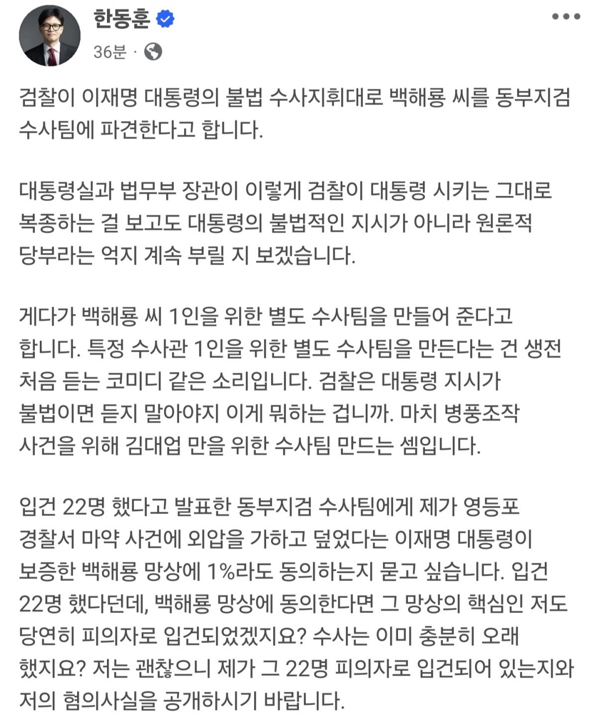 ÇÑ Àü ´ëÇ¥´Â À̳¯ ÆäÀ̽ººÏÀ» ÅëÇØ ¡°°ËÂûÀÌ ÀÌÀç¸í ´ëÅë·É ºÒ¹ý ¼ö»çÁöÈÖ´ë·Î ¹éÇØ·æ¾¾¸¦ µ¿ºÎÁö°Ë ¼ö»çÆÀ¿¡ ÆÄ°ßÇÑ´Ù°í ÇÑ´Ù¡±¸é¼­ ÀÌ·¸°Ô ¹àÇû´Ù.