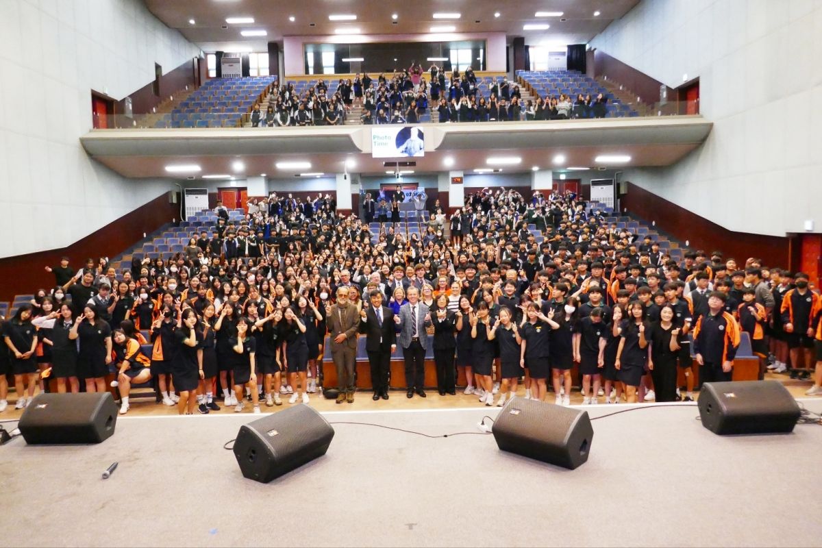 Á¸ ·Î½º ¼±±³»ç ÈļյéÀÌ 16ÀÏ ºÎ»ê À̻级Áß°íµîÇб³¸¦ ¹æ¹®ÇØ Ã¤ÇÃÀ» ¸¶Ä£ µÚ Çлýµé°ú ÇÔ²² ´Üü ±â³äÃÔ¿µÀ» Çϰí ÀÖ´Ù.