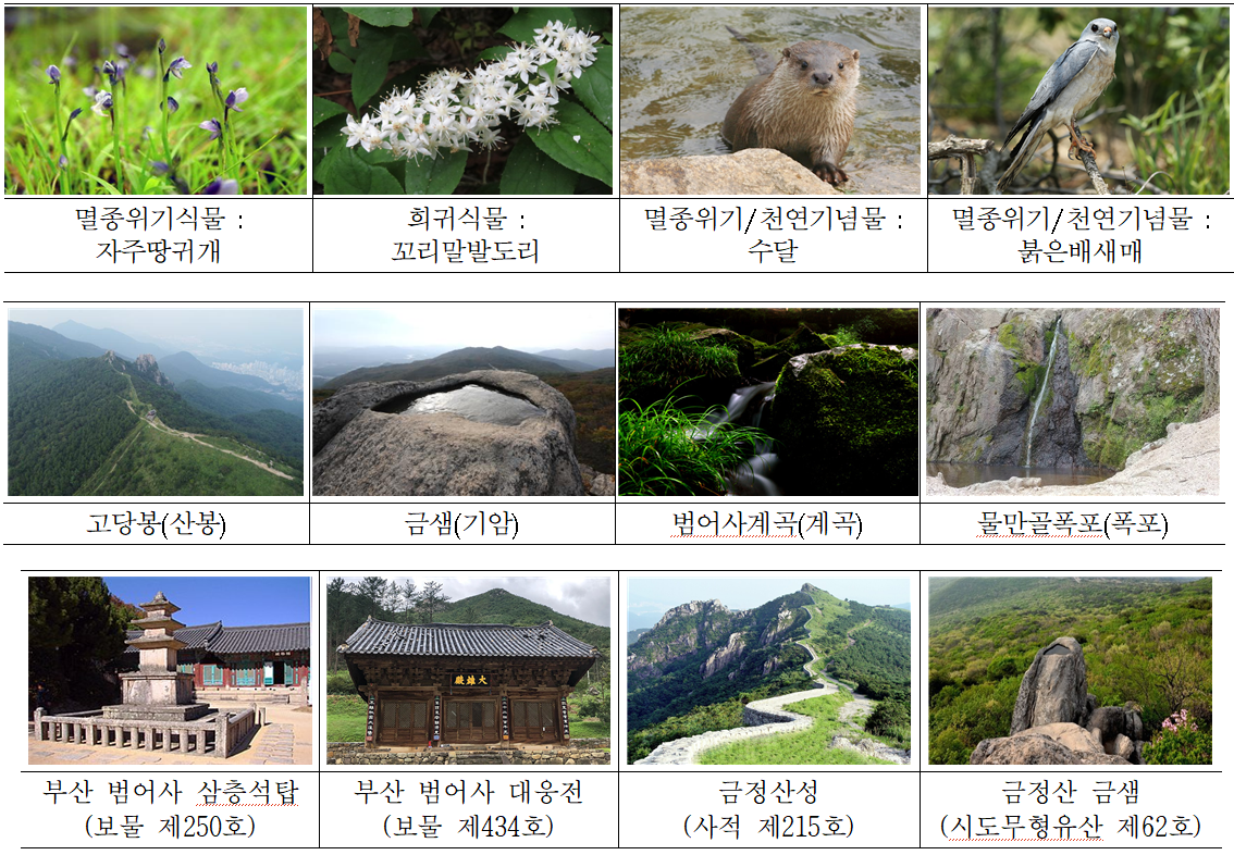 ±âÈÄ¿¡³ÊÁöȯ°æºÎÀÇ Å¸´ç¼ºÁ¶»ç(2020~2021)¿¡ µû¸£¸é ±ÝÁ¤»êÀº ¸êÁ¾À§±âÁ¾ 14Á¾À» Æ÷ÇÔÇØ 1782Á¾ÀÇ ¾ß»ý»ý¹°ÀÌ ¼½ÄÇϰí, 127Á¡ÀÇ ¹®ÈÀÚ¿ø°ú 71°³ ÀÚ¿¬°æ°üÀÌ ºÐÆ÷ÇØ »ýÅ¡¤¹®È¡¤°æ°ü °¡Ä¡°¡ ±¹¸³°ø¿ø ±âÁØÀ» ¸ðµÎ ÃæÁ·Çß´Ù. ƯÈ÷ ¹®ÈÀÚ¿ø ¼ö´Â Àü±¹ ±¹¸³°ø¿ø Áß °¡Àå ¸¹¾Ò´Ù. Ž¹æ°´ ¼ö´Â ¿¬°£ 312¸¸¸í(2017³â ±âÁØ)À¸·Î, Àü±¹ 5À§ ¼öÁØÀÌ´Ù.