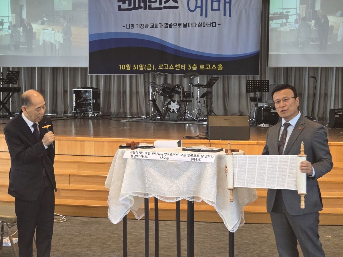ÀåÇö½Â(¿À¸¥ÂÊ) ¸ñ»ç°¡ 31ÀÏ °æ±âµµ °úõ¼Ò¸Á±³È¸¿¡¼­ ¿­¸° ¿¹Áî´ý Çູ¹ä»ó ÄÜÆÛ·±½º ¿¹¹è¿¡¼­ ¸ð¼¼5°æ µÎ·ç¸¶¸®¸¦ µé°í ÀÌ´ëÈñ ¸ñ»ç¿Í ÇÔ²² ¹ä»ó°ú °ü·ÃÇÑ ¼º°æ¸»¾¸À» ¼Ò°³Çϰí ÀÖ´Ù.