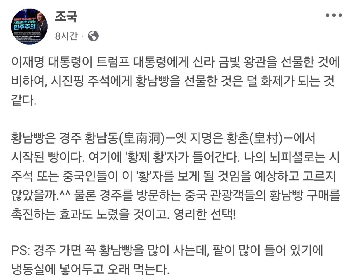 Á¶ À§¿øÀåÀº À̳¯ ÆäÀ̽ººÏÀ» ÅëÇØ ¡°ÀÌ ´ëÅë·ÉÀÌ Æ®·³ÇÁ ´ëÅë·É¿¡°Ô ½Å¶ó ±Ýºû ¿Õ°üÀ» ¼±¹°ÇÑ °ÍÀÌ ºñÇØ ½Ã ÁÖ¼®¿¡°Ô Ȳ³²»§À» ¼±¹°ÇÑ °ÍÀº ´ú ÈÁ¦°¡ µÇ´Â °Í °°´Ù¡±¸ç ¿îÀ» ¶Ã´Ù.