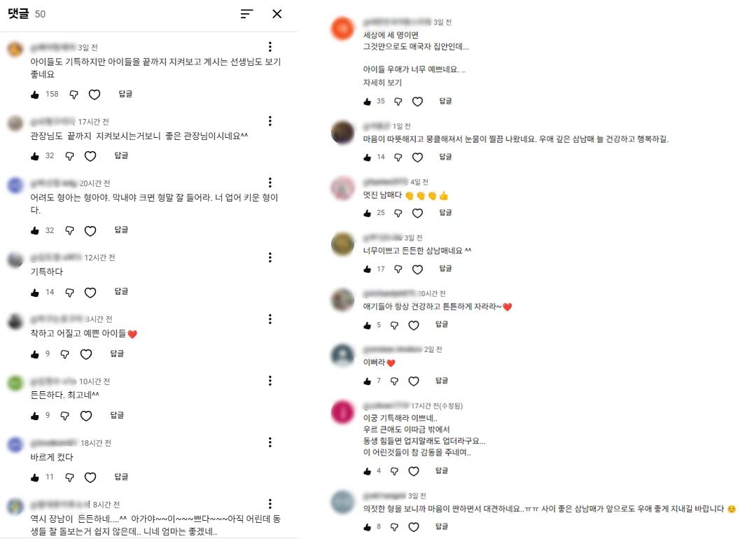 ±×¸®°í ¾ÆÀ̵éÀÇ ±âƯÇÑ ¸ð½À¿¡ ¼±»ý´Ôµé±îÁö °¨µ¿ÇØ Çб³¿Í À¯Ä¡¿ø¿¡¼ ´Ù°°ÀÌ ¿µ»óÀ» º¸¸é¼ µ¿³×ÀÇ ½ºÅ¸°¡ µÆ´Ù°íµµ ÇÕ´Ï´Ù. ÀÌ¿¡ ´ëÇØ »ï³²¸ÅÀÇ ¾ö¸¶ ½½¾Ö¾¾´Â ¡°´Ù¸¥ Áý°ú ´Ù¸¦°Ô ¾ø´Â Æò¹üÇÑ ¾ÆÀ̵éÀÇ ÀÏ»óÀ» °øÀ¯ÇßÀ» »ÓÀε¥ ¿¹»Ú°Ô ºÁÁּż °¨»çÇÏ´Ù¡±°í ÀλçÇß½À´Ï´Ù.