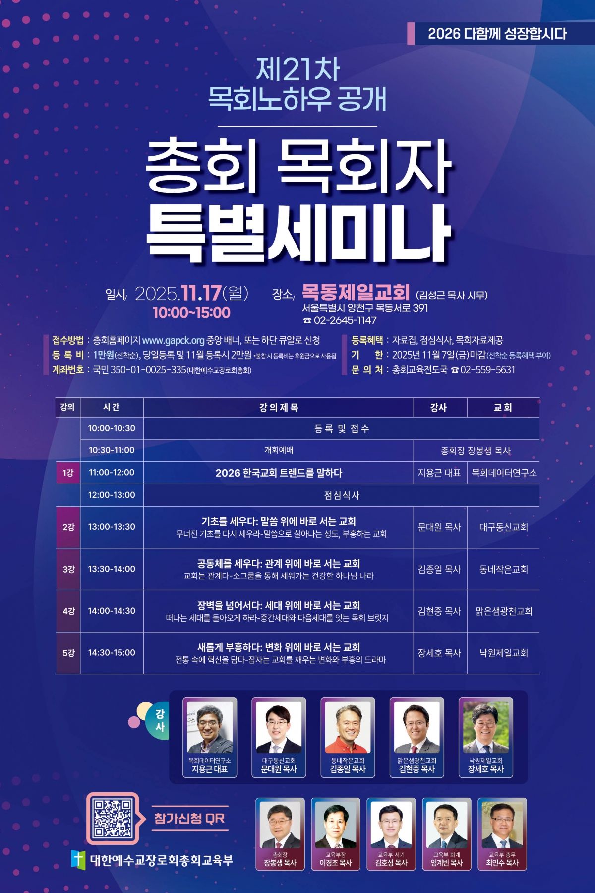 ´ëÇÑ¿¹¼ö±³Àå·Îȸ ¿¹ÀåÇÕµ¿ ÃÑȸ(ÃÑȸÀå ÀåºÀ»ý ¸ñ»ç) ±³À°ºÎ°¡ ¿À´Â 17ÀÏ ¼¿ï ¾çõ±¸ ¸ñµ¿Á¦Àϱ³È¸(±è¼º±Ù ¸ñ»ç)¿¡¼ ¡®Á¦21Â÷ ¸ñȸ³ëÇÏ¿ì °ø°³¡¯ ¼¼¹Ì³ª¸¦ ¿¬´Ù. À̹ø ÀÚ¸®´Â ³»³âµµ »ç¿ª Áغñ¸¦ ¾ÕµÎ°í ¸ñȸ ÇöÀå¿¡ ±¸Ã¼Àû ±â¼ú°ú »ç·Ê¸¦ Á¦½ÃÇϱâ À§ÇØ ¸¶·ÃµÆ´Ù.