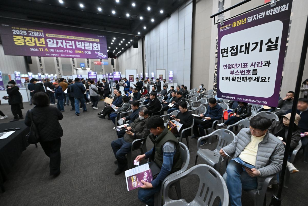 '2025 °í¾ç½Ã ÁßÀå³â ÀÏÀÚ¸® ¹Ú¶÷ȸ'°¡ ¿¸° 6ÀÏ °æ±â °í¾ç ŲŨ½º¿¡¼ ±¸Á÷ÀÚµéÀÌ ¸éÁ¢ ½ÅûÀ» À§ÇØ ÁÙÀ» ¼°í ÀÖ´Ù.