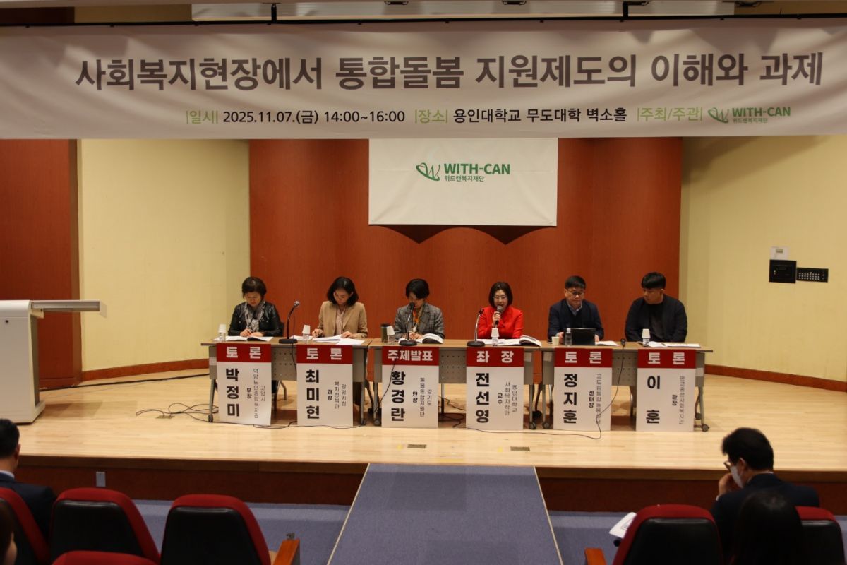À§µåĵº¹ÁöÀç´Ü(ÀÌ»çÀå Àü¼±¿µ)Àº Áö³ 7ÀÏ ¿ëÀδëÇб³ ¹«µµ´ëÇÐ º®¼ÒȦ¿¡¼ ¡®»çȸº¹ÁöÇöÀå¿¡¼ ÅëÇÕµ¹º½Áö¿øÁ¦µµÀÇ ÀÌÇØ¿Í °úÁ¦¡¯ Æ÷·³À» °³ÃÖÇß´Ù.
