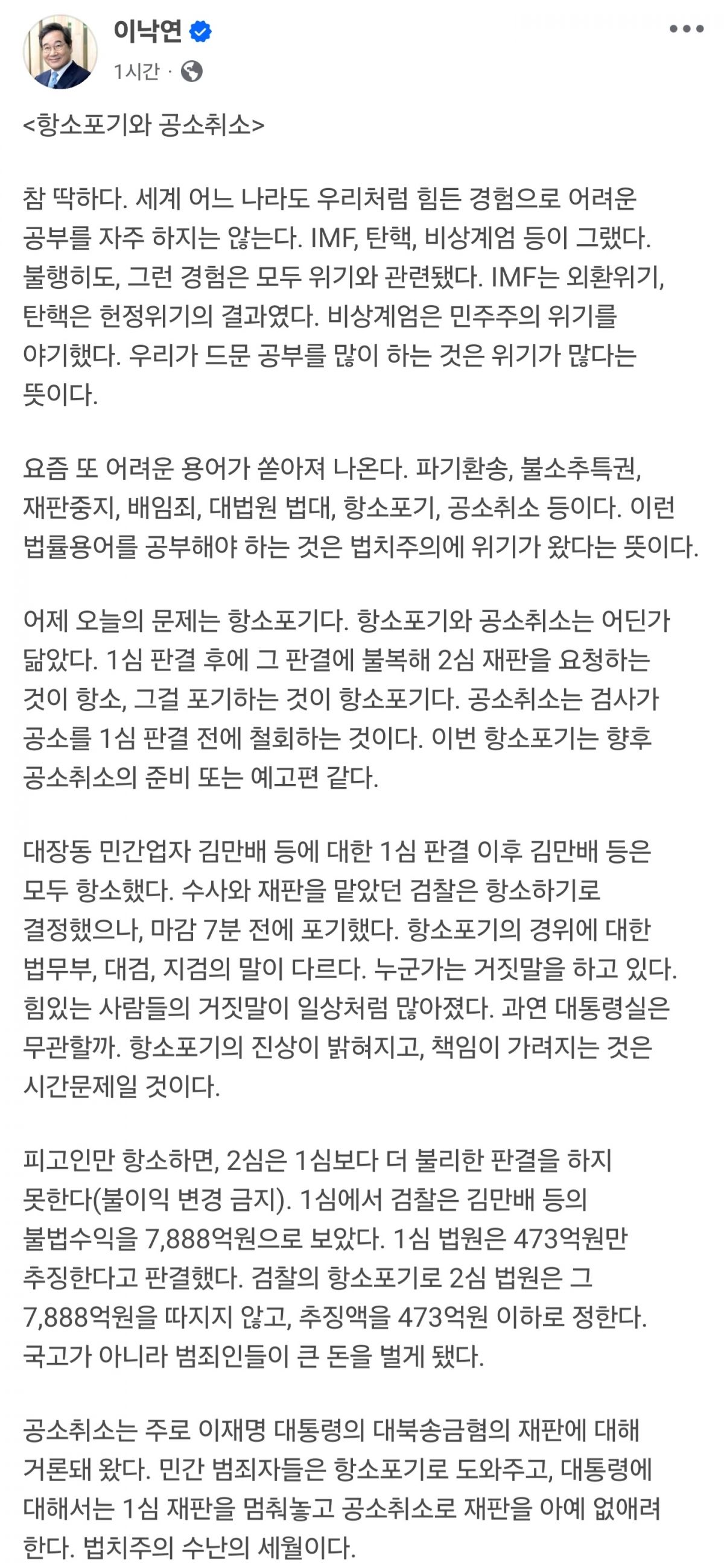 ÀÌ »óÀÓ°í¹®Àº ¡°°ø¼Ò Ãë¼Ò´Â ÁÖ·Î ÀÌÀç¸í ´ëÅë·É ´ëºÏ¼Û±ÝÇø ÀçÆÇ¿¡ ´ëÇØ °Å·ÐµÅ ¿Ô´Ù¡±¸ç ¡°¹Î°£ ¹üÁËÀÚµéÀº Ç×¼Ò Æ÷±â·Î µµ¿ÍÁÖ°í, ´ëÅë·É¿¡ ´ëÇØ¼± 1½É ÀçÆÇÀ» ¸ØÃç³õ°í °ø¼Ò Ãë¼Ò·Î ÀçÆÇÀ» ¾Æ¿¹ ¾ø¾Ö·Á ÇÑ´Ù¡±°í ÁÖÀåÇß´Ù.