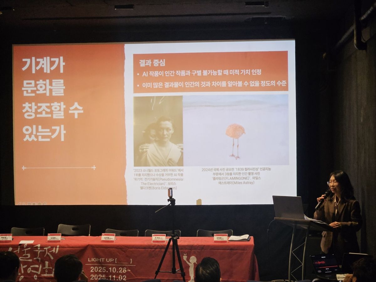 ±è°æ·¡ Àå½Å´ë ±³¼ö´Â AI¸¦ Ȱ¿ëÇØ ¹®È¸¦ âÀÛÇÒ ¶§ ¡®Ã¢ÀÛÀÚ´Â ´©±¸Àΰ¡¡¯¶ó´Â Áú¹®À» ´øÁö¸ç, ½ÅÇÐÀû °üÁ¡¿¡¼ âÁ¶¿Í À±¸®Àû Ã¥ÀÓÀ» ¿ª¼³Çß´Ù. ƯÈ÷ ÀϺ»°ú ¹Ì±¹ µî¿¡¼ AI°¡ ¸¸µé¾î³½ À̹ÌÁö¿Í ±×¸²ÀÇ ÀúÀÛ±ÇÀ» ÀÎÁ¤ÇÏÁö ¾Ê´Â´Ù´Â Á¡À» °Á¶Çϸç AI¸¦ âÀÛÀÇ ÁÖü°¡ ¾Æ´Ñ µµ±¸·Î ±ÔÁ¤Çß´Ù.